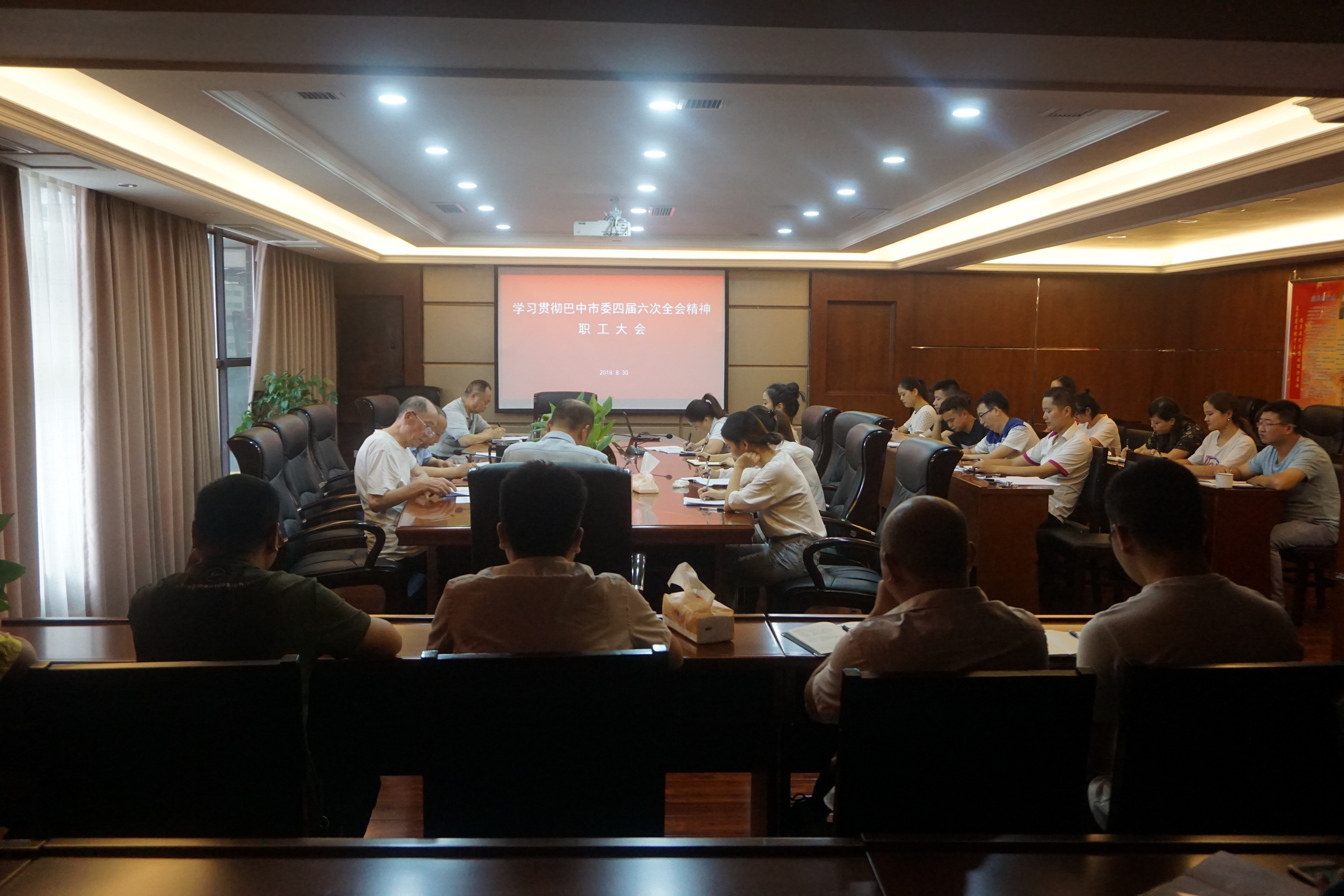 8月2日上午9点至10点半召开党员和职工会议,由董事长王代文组织学习传达市委四届六次全会精神。同时,对搞好本次学习要求以部门为单位,采取自学和集中学习,每周集中学习不少于90分钟,要把会议的主要内容学好学深学透。