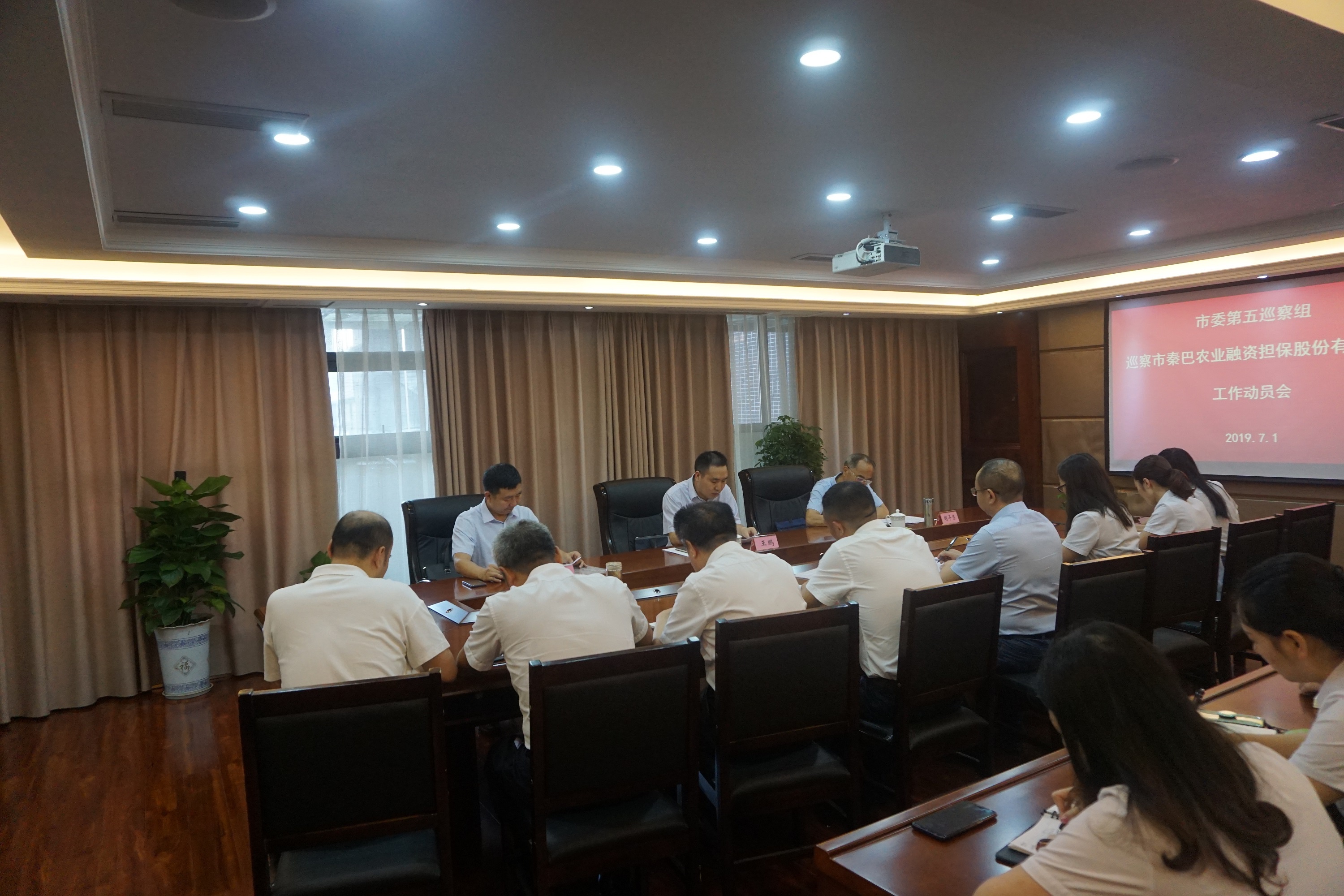 7月1日上午,市委第五巡察组进驻市秦巴农业融资担保股份有限公司动员大会召开,市委第五巡察组组长王鹏作动员部署,副组长胡平荣出席会议。市秦巴农业融资担保股份有限公司董事长王代文主持会议并作表态发言。